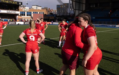 180426 - Wales v France, Guinness Women’s 6 Nations - Branwen Metcalfe of Wales with Kate Williams of Wales at the end of the match