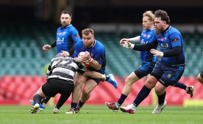190426 - Tumble v New Dock Stars, Mens Division 3 Cup Final - Ellis Dickeson of New Dock Stars is tackled by Iwan Morgan of Tumble