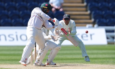270426 - Glamorgan v Leicestershire, Rothesay County Championship Division 1 - Ben Cox of Leicestershire plays a shot as Chris Cooke of Glamorgan looks on